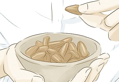 Increase your intake of nuts and seeds to support your nutrition. Nuts and seeds are high in antioxidants and healthy fats, which can help improve your memory. Try to incorporate more nuts into your diet, including cashews, pistachios, sesame seeds, walnuts, and almonds. You can eat them raw as snacks or incorporate them into salads or other recipes. You can also use peanut butter or tahini as a spread for your whole grain bread or as a dip for vegetables and fruits. Make sure you get all natural kinds without hydrogenated oils.