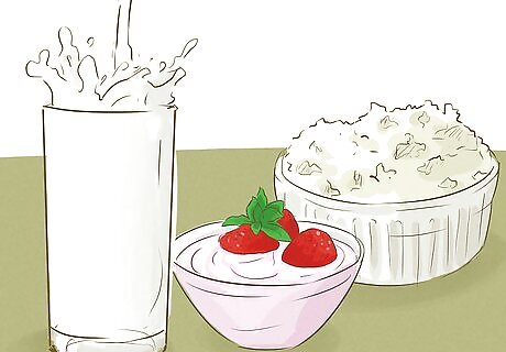 Include eggs and dairy products to possibly improve your memory. The Mediterranean diet also includes dairy products such as milk, cheese, and yogurt to help improve your memory. You can also eat eggs. Eat these in moderation so as to not to get too much saturated fats, which are not great for you. Look for grass-fed, hormone free, and antibiotic free eggs. Also choose skim milk, low fat cheese, and fat free yogurt to avoid too much fat.