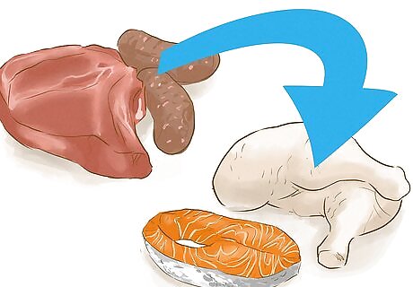 Select lean meats like fish and poultry. The Mediterranean diet requires you to eat little to no red meat or pork. Instead, you need to eat fish and other seafood at least three times per week to help improve your memory. You can also eat poultry three times a week as well. If you really want to eat red meat or pork, make sure you limit your it to once or twice a week maximum and that it is lean and in small portions.