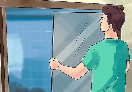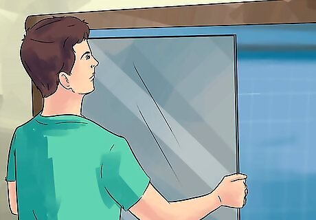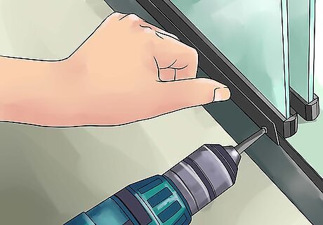 Install the door swinging door. Swinging doors will need to be installed differently, according to the kit that you've purchased, so it's important to read the instructions that come with it and follow the directions accordingly. The door needs to be installed so it pivots outward, but for some kits that'll be on the left side and for some that'll be on the right side, and the mechanism works differently, depending. With some, the door will just snap into place, while screws will be used for other kits. In most swinging door kits, a strip of rubber will be slid into the wall track opposite the pivot point, held with screws in some cases.