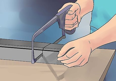 Cut the tracks to the appropriate size, if necessary. Measure the width at the bottom of the shower opening. Transfer that measurement to the bottom shower door track and mark with your marking pen. If the track fits to size, move forward with installation. If it's too long, you'll need to cut it to the appropriate length. Using a hacksaw, carefully cut the rail at the mark you made. Be sure the rail is held firmly as you cut to avoid damage to the rail or the saw. Use a file to remove the burrs from all metal pieces you cut.