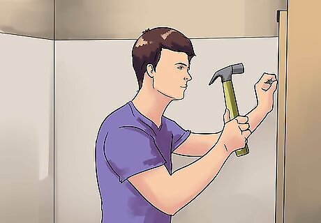 Hammer your plastic wall anchors into the holes. Take the wall anchors that came with the shower door and hammer them into the holes firmly with the hammer. These create a solid base for the wall screws to grip into, securing the side columns to the wall. If you don't use these, there won't be anything for the screws to grip.
