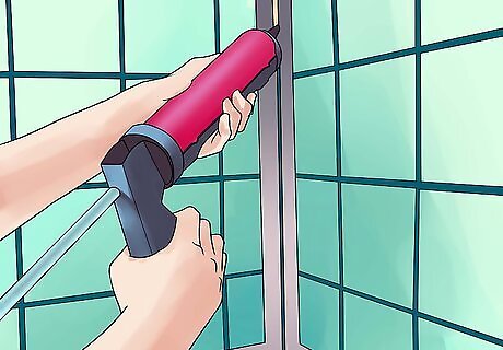 Hold the column back up to the wall and screw it in. Line the holes back up with the wall anchors and secure the column to the wall by screwing them in with the corresponding wall screws. They should seat perfectly into the wall anchors. Repeat this process with the other column to secure it. Squeeze a thin layer of silicone into the gap where the column meets the tile, on both sides of each. To avoid seepage, it's usually a good idea to apply a thin layer of caulk around each column.