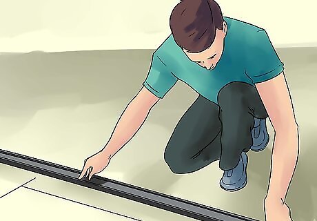 Install the bottom threshold track. Run a bead of caulk, about the thickness of a bead of toothpaste, along the bottom mounting surface. Center the bead between the two lines you marked when you measured and run it the full length of the gap as well. Then, firmly set the bottom track into place over the bead of caulk. Make sure the underside of the track makes contact with the caulking. If not, run a separate bead along the center of the underside of the track. Hold the track in place for a minute or two, taping it down to hold it in place if necessary. It should be try in five minutes at the most, then you can move forward knowing that it's secure.