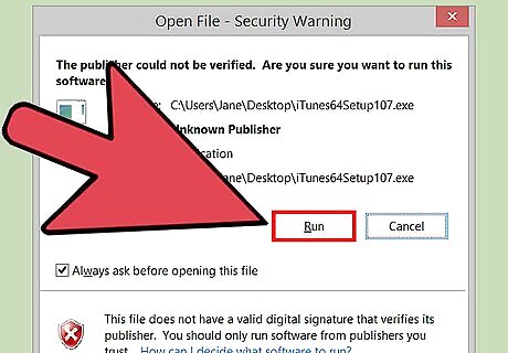 Select the option to run the file when prompted to by Windows. iTunes will begin the installation process.
