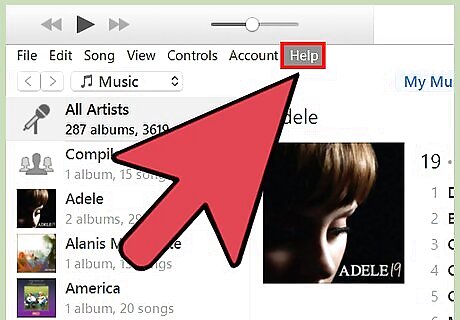 Click on “Help” in the iTunes toolbar if you’re using a Windows computer. Click on “iTunes” in the iTunes toolbar if you are using a Mac computer.