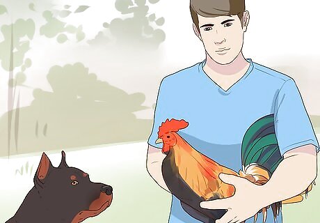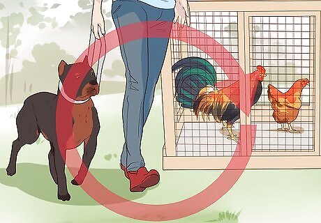 Deal with a dog that cannot be trusted with chickens. Despite your best efforts, it may be the case that your dog will always want to hunt the chickens. If this is the case, don’t blame your dog or the chickens. Rather, take practical measures to keep your dog away from the chicken coop. Make sure the chicken coop is secure. Keep your dog on a leash whenever you are working in the coop or whenever the dog is close to the chickens.