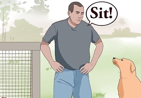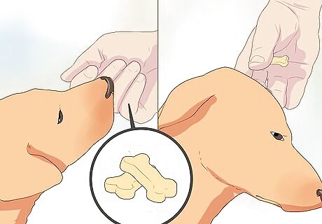 Do reward training away from the chickens. You should start by training your dog away from the chickens. Teach them basic commands such as sit, stay, heel, off and take it. Once they have these commands down, you will be well prepared to begin training them near the chickens. Most importantly, you should use reward training to get them to understand ‘off’ and ‘take it.’ Hold a treat in your closed hand. Don’t let your dog get at the treat until they have moved their mouth away from your hand. Once they move their muzzle away from your hand, give them the treat. Then, associate these behaviors with the words ‘off’ and ‘take it.’ If you want assistance, consider formal training classes. You can find them online or by checking with local pet stores and veterinarians.