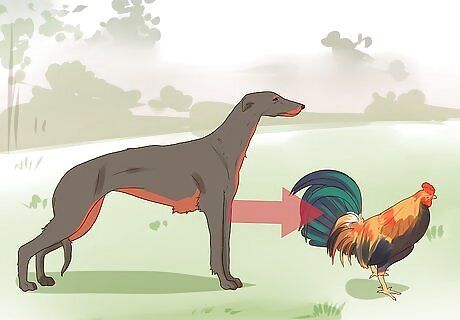 Recognize whether you have a breed with a high prey drive. Some dogs, like Greyhounds, have a high prey drive. If you have one of these dogs, they will be very hard to train for the purposes of guarding or getting along with chickens. Their natural inclination will be to hunt the chickens, following the characteristics of their breed. Golden retrievers are also bred for hunting. Other dogs--like German Shorthaired Pointers, Labrador Retrievers, and many hounds—are hardwired to go after birds.