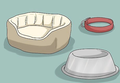 Gather new supplies for the new dog. Get separate food and water bowls, a new bed, collar and leash, and a dog crate. Your new dog should not eat or drink from an established dog's bowls. Likewise, it should not sleep in an established dog's bed.