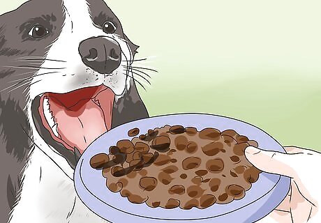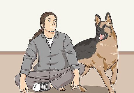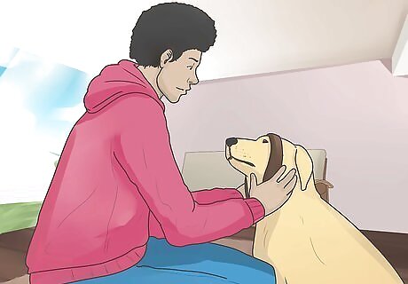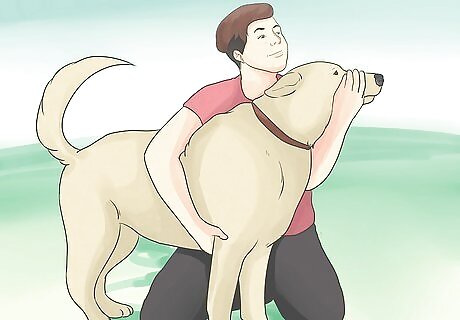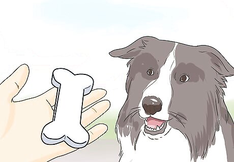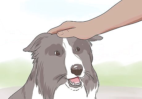 Praise your dog. Give your dog positive reinforcement by telling him that he’s a good dog. Give him a pet and scratch behind the ears.