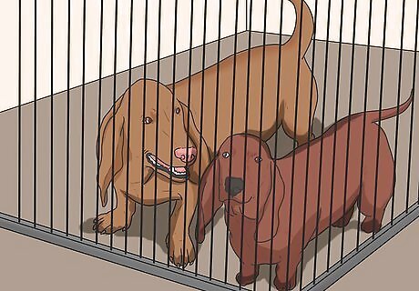 Let the new dog explore new rooms for 20 minutes. If the new dog seems inquisitive, you can start to show him other rooms, one at a time. Take him to each new room and let him explore for about 20 minutes at a time. If the dog seems overwhelmed, limit him to one room for a few days. Make sure the new dog always has ready access to his crate.