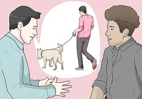 Ask a friend to bring the new dog on a walk. The rescue shelter or owner should walk the dog in the same park where you are. Plan to meet at the same time so that the dogs can interact.