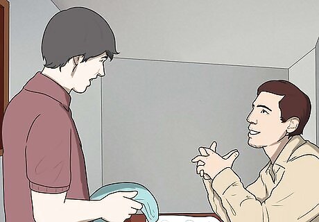 Keep the new dog isolated for the first 24 hours. When you bring the dog home, introduce him steadily to new rooms in your house. Limit him to the first room for at least 24 hours, keeping him in that room with his crate open. Allow the new dog a bit of time to get used to his new surroundings. He will slowly get accustomed to new scents, such as the scents in your house and the scent of the established dog from the t-shirt in his crate. Do not give him the range of the house straight away. This will overwhelm him.