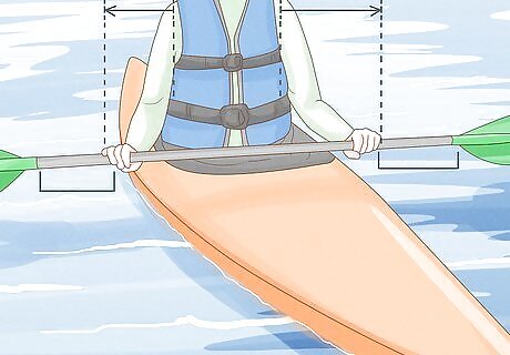 Hold the paddle so your hands are stretched out a little past your shoulders. Grip the paddle in the middle so there’s an equal amount of space in between each hand and the blades on each side. Make minor adjustments with your grip to stay comfortable.
