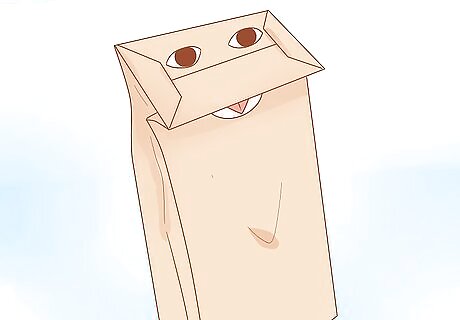 Draw a face on the bottom of a paper bag to make a puppet. Airplanes usually have a small bag in the pocket in front of each seat. This bag is meant as a container to get sick into if needed, but you can also use it as a way to entertain your toddler. Get out a pen, pencil, marker, or crayon and draw a silly face on the bottom of the bag. Then, stick your hand into the bag and use the bag as a puppet to entertain your toddler. Have the puppet sing, talk, and do other things to entertain your toddler. Give the bag to your toddler and let them operate the puppet as well.