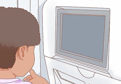 Allow your toddler to watch in-flight programming. If there is a TV screen in front of your toddler’s seat, then turn it on and find something that your toddler would like to watch. This is unlikely to keep them entertained for long, but it might help to ensure that your toddler is happy for a little while. Although screen time is not recommended for children under the age of 18 months, children over 18 months may actually benefit from 30 minutes of educational screen time, and up to 1 hour between the ages of 2 and 3.