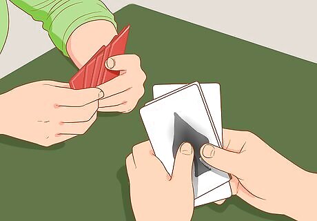 Pack travel games to play together. There are lots of different travel games that you can purchase and play with your toddler. Look for games that are appropriate for your child’s age. Some toddlers may also be able to play basic card games. Try getting a travel BINGO card that you can help your toddler fill out. Get a simple game, such as Connect 4, and show your toddler how to play. Puzzles and peg boards are also good options for playing with your toddler on the plane. Bring a standard deck of cards and play Go Fish, or get a special card game meant for young children, such as Old Maid.