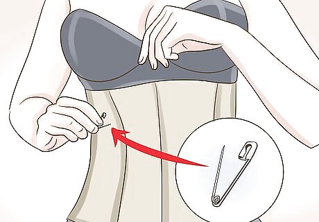 Attach it to your bra with safety pins. Place one safety pin on each side of the cincher. This will keep it firmly attached to your bra. If your cincher rolls at a certain spot, you can put the safety pin there. Be careful not to stick yourself with the pin!