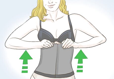 Pull it up as high as it will go. Once the cincher is on, you should tug at it so that the top band is sitting comfortably above your waist. This will help give you a flatter shape while preventing bunches and rolls in the cincher.