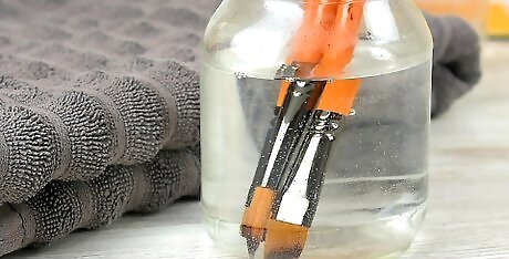 Wash and reshape your brushes after using them. Caring for your paint brushes is super important so that they stay shaped and keep their bristles intact. Once you’re finished using them, rinse them with water and a special soap for paint brushes to remove the excess paint from the bristles. Use your fingers to shape the bristles, creating a straight point so the brush will dry correctly. If you don’t have paint brush soap, a gentle dish soap will work as well. For example, if you’re using a brush with a pointed tip, wash the bristles and reshape them into a point while it’s still wet so it will dry in that shape.