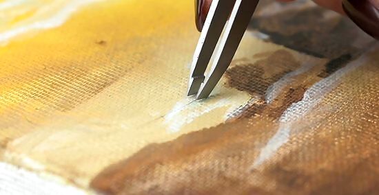 Use tweezers to remove brush hairs from oil or acrylic paintings. This works whether your painting is wet or not, though it may be easiest when the paint is still damp. Use the tweezers to pick up the brush hair, being careful not to dig too deeply into the painting with the tweezers so you don’t make a mark. A palette knife can also work to remove brush hairs. Use the tip of the palette knife to lift the brush hair up, positioning the palette knife under the hair carefully.