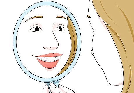 Check your smile. Smile in the mirror and check your teeth for any lingering color. If you see any lipstick, gently rub it away with your pinky finger.