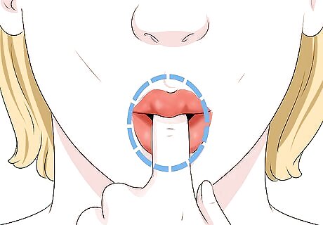 Put your finger in your mouth. Form an O with your mouth around your finger, and gently slide your finger straight out of your mouth. This step will remove any lip color remaining on your inner lips, keeping your teeth pearly white. You can also remove any excess lipstick by blotting your lips several times with a tissue.
