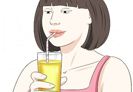 Drink with a straw. Minimizing lip-to-glass contact will keep your lipstick from smudging. If you must drink straight from a glass, try licking the edge you’ll be drinking from, and only take sips from that spot.