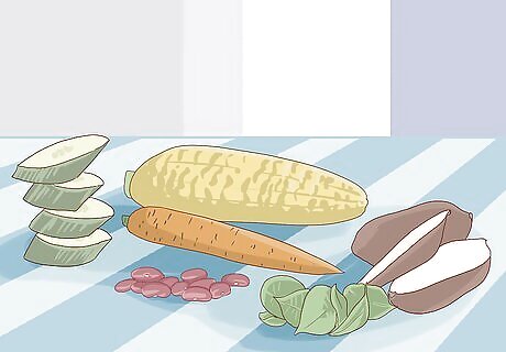 Incorporate helpful foods into your diet. Dietary guidelines for people suffering from type 1 diabetes are not all that different from those without diabetes. Simply make certain you eat well-balanced and nutritional meals. Consume foods that contain lots of nutrients. For each meal, eat a serving of vegetables without starch such as broccoli, carrots, peppers, mushrooms, spinach and cucumbers. Try and eat at least one serving of starchy foods per meal like, corn, potatoes, whole grain rice and bread, peas, and cooked beans. Low-sodium foods are best. Avoid drinks containing a lot of sugar. Have a glass of low-fat or fat-free milk with each meal.