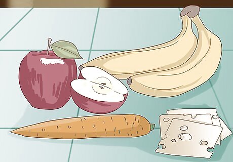 Carry snacks with you. It is a must to keep snacks with you at all times to help control your blood sugar levels. Carbohydrate-rich foods will raise your blood glucose levels. Don't overeat them. Good options for snacks with carbs and protein are almonds, string cheese, hummus, apples, carrots, cantaloupe, cottage cheese, bananas, and peanut butter. Consider keeping a log of your glucose level, time, and insulin dosing. You can do this on paper or even on your phone — there are apps that will help you easily log and track your levels. Your doctor can use this information to look for patterns in your glucose levels, and it can help you identify which foods cause a spike in your glucose levels.
