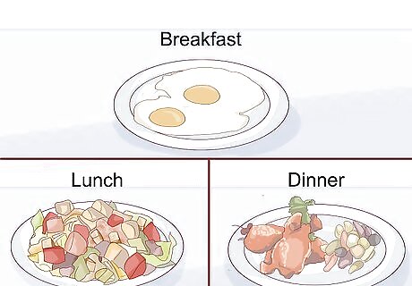 Develop an eating plan for yourself. It is just as important to maintain a diet that consists of food you enjoy as it is to maintain one that controls your blood sugar levels. This way, you are more likely to adhere to the diet because you are enjoying the foods you eat. Create a plan that include both snacks and full meals that can be easily incorporated every day. Meal plans must be customized because not every meal plan will work for everyone. Make adjustments when necessary. Don't overeat. Be sure to eat three meals per day if that is what you're used to or several small meals per day if you eating habits are more like that. Create eating patterns by making sure you eat around the same time each day and eating meals with similar amounts of carbohydrates, proteins, and fats.