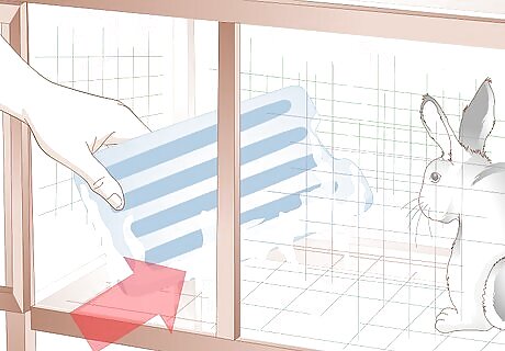 Provide plenty of cool water. It’s always important to provide your rabbit with fresh water, but when the weather is very warm, it is critical. To encourage your rabbit to stay adequately hydrated during the heat, give it both a dripper and an open bowl of water. Replenish both frequently.