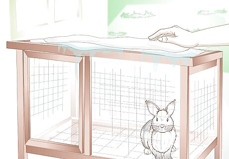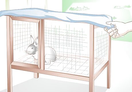 Drape the hutch with wet towels. If the covering on your rabbit’s cage is dampened, this can provide additional cooling power. You can also mist your rabbit’s hutch with water for a similar effect. If it is both hot and humid, however, this technique may actually make things worse. Only use damp dowels or misting to cool your rabbit when the humidity is relatively low.