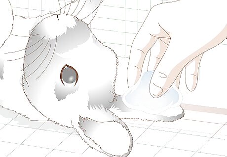 Dampen your rabbit’s ears. Rather than perspiring, rabbits radiate heat from their ears to cool themselves. You can help this process by slightly misting your rabbit’s ears. Don’t overdo it, though—you want to dampen the ears, but not soak them. If it is humid outside, skip this step, since it can actually make your rabbit more uncomfortable.