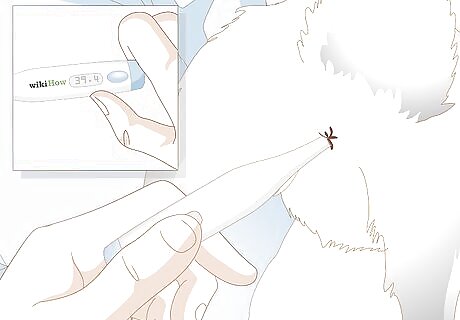 Check the rabbit’s temperature. The normal body temperature for a rabbit ranges from 101 F - 103 F (38.3 C - 39.4 C). If you think that your rabbit might be too hot, take its temperature to be sure. The best way to check your pet’s temperature is to use a plastic rectal thermometer. If you don’t have experience doing this, or are afraid of harming your rabbit, take it to a veterinarian for help.