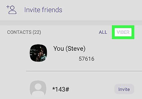 Tap the VIBER option at the top of your contacts. This button is located in the upper-right corner of your contact list.