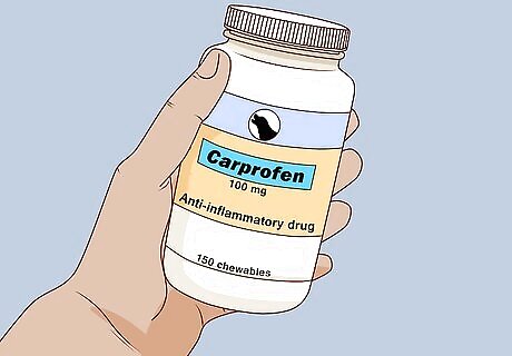 Administer medication. Anti-inflammatory drugs and/or pain relievers may be prescribed for dogs with moderate to severe pain, including partial paralysis. Some dogs who do not respond to medication or who have advanced degenerative disc disease may need surgery. Common nonsteroidal anti-inflammatory drugs (NSAIDs) used for back pain include Rimadyl (carprofen), Etogesic (etodolac), and Deramaxx (deracoxib). You will need a prescription for these medications.