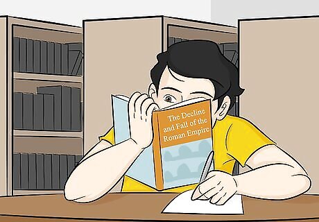 Find books. One of the best ways to learn about Ancient Rome is to visit your local library or bookstore to find books on the subject. At a library or bookstore, you’ll be able to browse through a wide variety of books on a number of subjects related to Roman history and life. Finding books to read on Ancient Rome is perhaps the best way to learn about the subject. Consider classics like Edward Gibbon’s History of the Decline and Fall of the Roman Empire (1776). Look at books on different aspects of Roman history and society. Consider religion, government, language, military history, and more. Think about eBooks or other books online. There are a wide variety of websites that offer free digital copies of classic works on a variety of subjects.