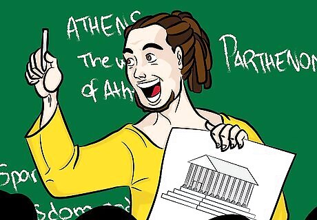 Give a presentation about ancient Rome. You can do this in person, or you can film yourself and put it online! If you are taking a history class, ask your instructor if you can give your presentation to the class. If not, put a video of your presentation on a site like YouTube or a social media site. Ask your friends or family members to watch your presentation. You could also look for a group in your area that studies history. They may welcome you as a guest presenter. Check with your library, local historical society, or online through a site like meetup.com.