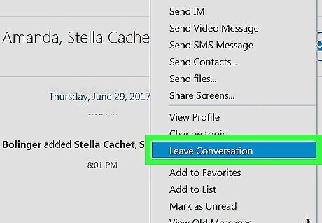 Right-click the group name. It's at the top of the conversation. If you’re using a computer that doesn’t have a right mouse button, press and hold Ctrl as you click with the left. If the group doesn’t have a descriptive name, right-click the list of participants at the top of the chat.