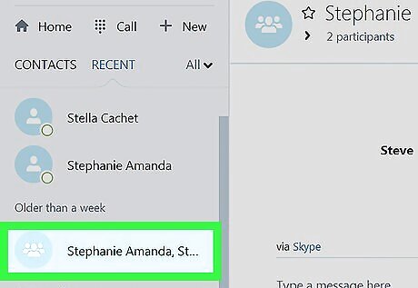 Click Recent. It’s in the left column. You’ll usually find it next to a button that says “Contacts.” If you’re using Skype for Windows 10, you’ll already see your recent chats expanded on the left side of the screen.