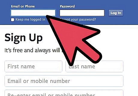 Log into your Facebook account. Type your email address and password into the boxes on the screen, then click “Log in.”