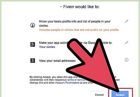 Confirm the link. A new screen will pop up asking for your permission to confirm that you want to link your Google+ to your Fiverr; just click the green “Accept” button.