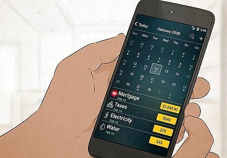 Keep a calendar to help you pay all your bills on time. If you accidentally forget that a bill is due, you can end up paying a lot extra in late fees and penalties. To avoid that, use a calendar to track the due date of each of your bills. Check it frequently, and mark off each bill when it's paid. To help you plan your budget for the next month, write down the amount of each bill in your calendar as you pay it. Find the calendar system that works for you! For instance, if you're on your phone a lot, you might prefer to use a calendar or bill tracking app. If you prefer a physical calendar, try hanging it somewhere you'll see it often, like on your fridge or near your desk. Setting up automatic payments can also help you avoid missing a due date. However, you may still want to track your bills in a calendar so you always know what's about to come out of your account. Also, be sure to check your bank account online to verify that the payment went through. Making late payments can also have a negative impact on your credit score. This can cost you even more money in the long run, because you may have to pay higher interest on things like a car loan or mortgage.