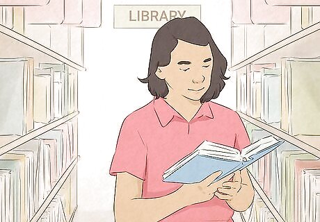 Visit the library to find free books to read. Most people spend a lot of time reading these days, but the majority of that time is on their phones. Instead of scrolling mindlessly through social media, spend time browsing the shelves at your local library—reading will enrich your mind whether you're into self-help books, autobiographies, adventure stories, or romance novels. You can also look for free or cheap e-books online if you don't live close to a library.