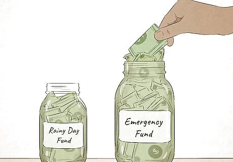 Save some of your leftover money each month. It can seem really hard to put extra money aside when you're on a tight budget. However, it's essential to have a savings fund, especially if you wouldn't be able to financially cover an emergency. It's a good idea to have 3-6 months' worth of expenses in your emergency savings, but it's okay if you can't save that all at once. Even if you start out only saving $5 or $10 a month, it will help to have that extra cash on hand in case you run into something like an injury, unexpected expense, or loss of wages.. Set a savings goal for yourself and stick to it, like saving $10 out of your paycheck every week. It can help if you automatically deduct some of your savings from each paycheck. You won't miss the extra money as much since you'll never actually see it. Keep your savings in a separate account from your bill and spending money so you don't accidentally use it. Once you have your emergency savings built, you can set new savings goals, like taking a vacation or buying a car.