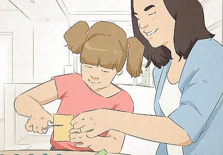 Teach kids to have fun with things you find around the house. If you have kids at home, encourage them to play dress up, invent new games, and create props out of whatever's lying around. Children have amazing imaginations, and they don't need the fanciest toys or latest devices to have a great time. However, they sometimes can use a little inspiration. For instance, you might fold hats out of newspaper, then decorate them to look like pirate hats. Then, you could make swords out of cardboard and run around being swashbucklers for an afternoon! To keep the kids from getting bored with the game, you could even plan a treasure hunt, complete with homemade maps. To help kids have a good understanding of money later, talk to them early about things like the value of a dollar and how savings and investments work. Let it be an open, ongoing conversation, instead of a hush-hush thing.