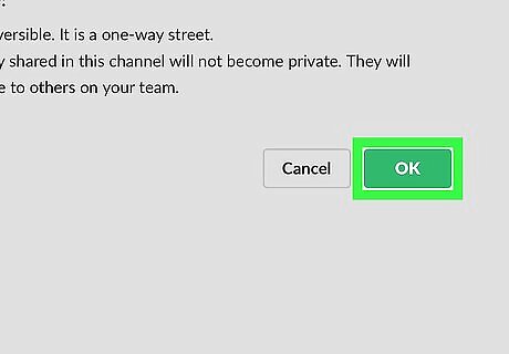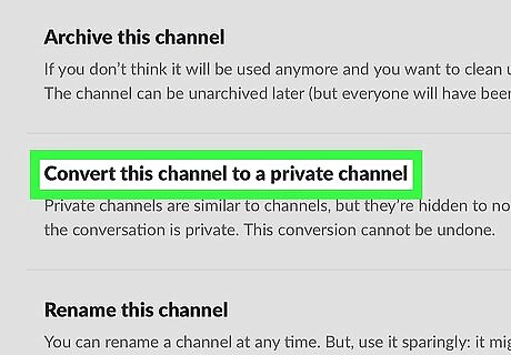 Tap Convert this channel to a private channel. A confirmation message will appear, containing details about the conversation process. Be sure to read this screen before you continue.