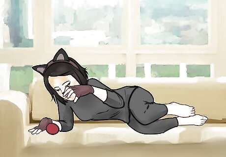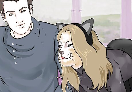 Adopt a cat's attitude. Cats are often seen as standoffish and independent. Embrace your inner feline by carrying yourself with an air of indifference. Flip your hair in arrogance as you walk away from people. Keep up the attitude by standing by yourself or eating alone in a corner. Affectionately rub against people you like. Hiss and swat your hands towards people that are not respecting your costume.